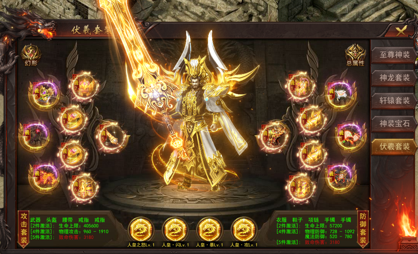 2、新增伏羲神装(开服达到210天开启,神装-伏羲神装)