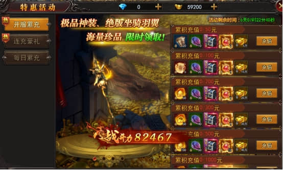 【活动内容】活动期间,每天累计充值相应的价格,即可领取丰厚奖励